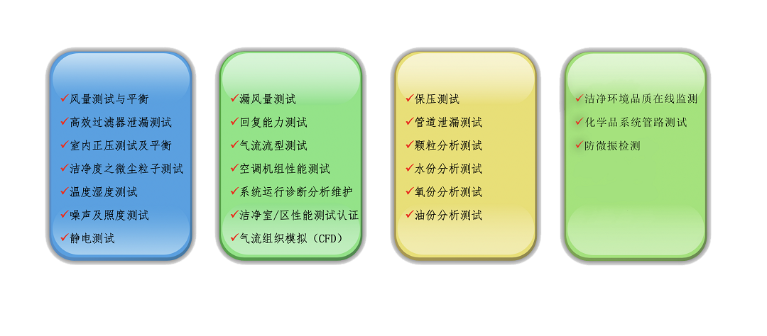 主要為客戶提供高純(特殊)氣體系統檢測、工廠運行環境及系統品質診斷、防微振檢測、潔凈廠房綜合性能測試及驗證、維護解決方案及潔凈技術相關咨詢與支持服務。